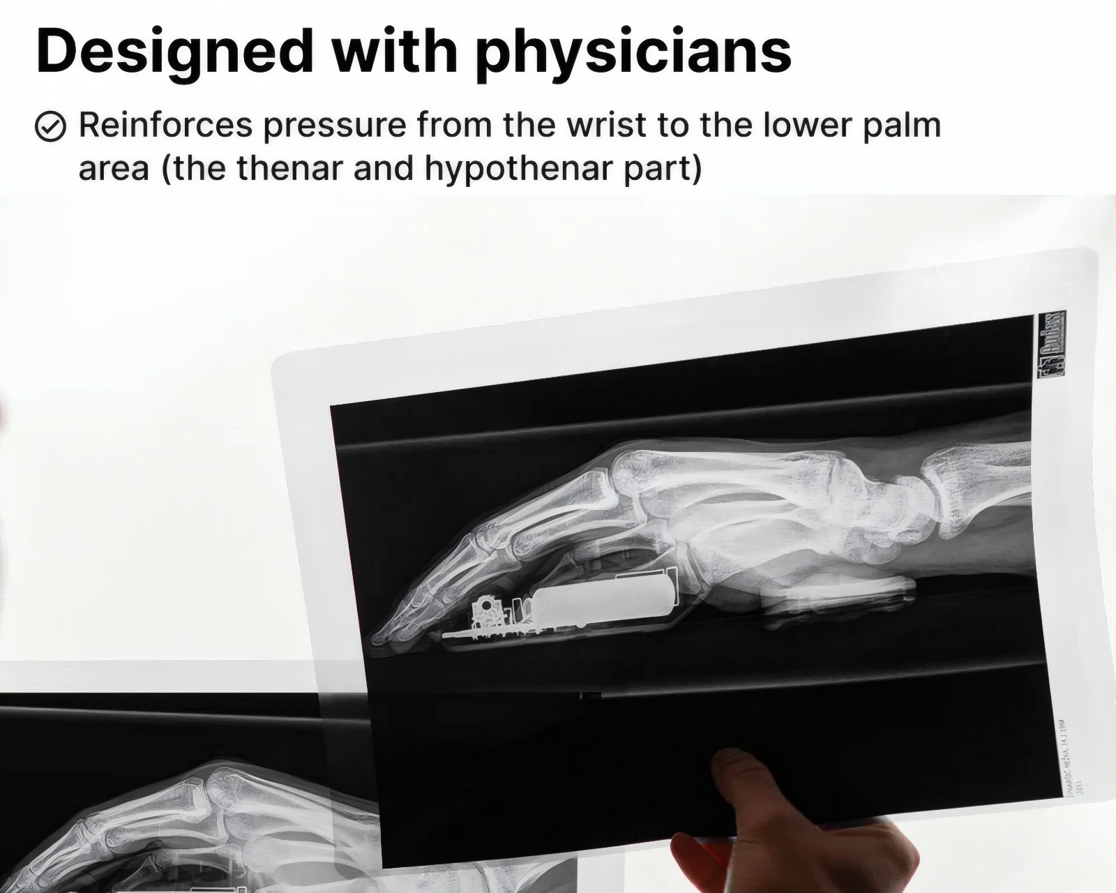 "Mittaa kätesi peukalon tyvestä isosta luusta kämmenen vastakkaiselle puolelle. Jos pituus on yli 8,5 cm, valitse koko Large. Jos mitat ovat lähellä 8,5 cm, valitse myös Large mukavan istuvuuden vuoksi."