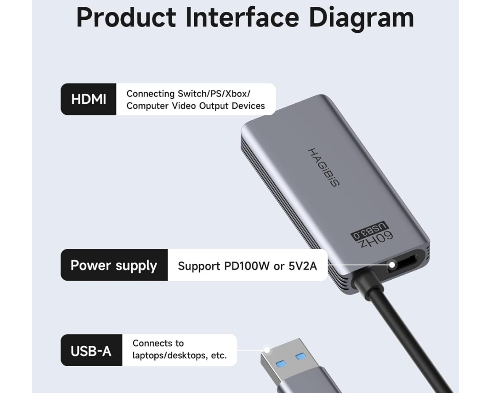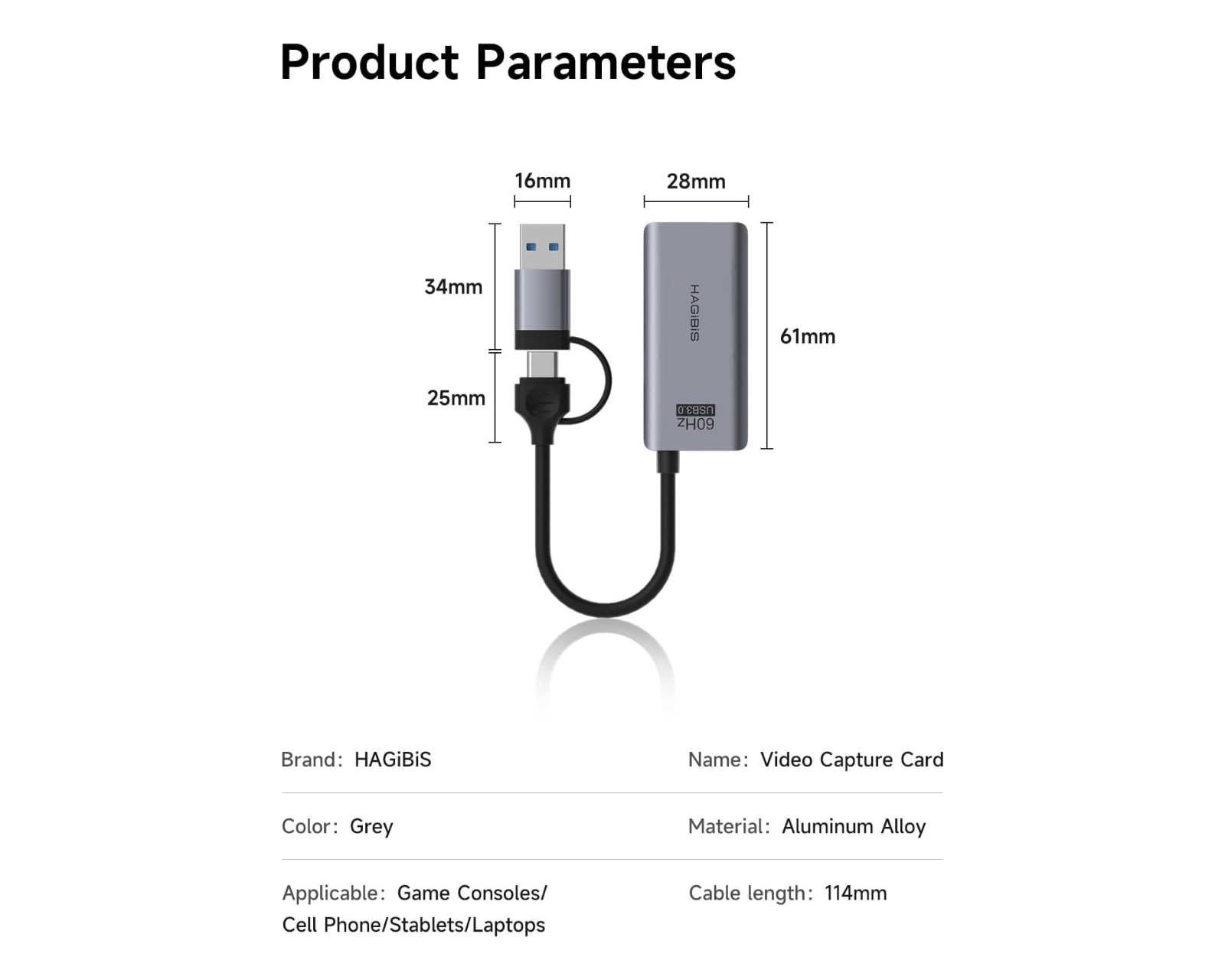 Hagibis videotallennuskortti on Hagibiksen videokaappauslaite, joka mahdollistaa HD-videon ja äänen tallentamisen. Sen maksimiresoluutio on 1080p 60 kuvia sekunnissa, mikä tekee siitä sopivan pelaajille ja käyttäjille, jotka etsivät streamata tai tallentaa laatu sisältöä. Siinä on sekä HDMI- että USB Type-C -liitännät, mikä tekee siitä yhteensopivan monen eri laitteen, kuten kannettavien tietokoneiden, tablettien, matkapuhelimien, Xboxin ja PS4/5:n kanssa.Laite on rakennettu innovatiivisella kaksoisliitännäsuunnittelulla, joka eliminoi käyttöliittymän yhteensopivuusongelmat. Se on plug & play, mikä tarkoittaa, että sitä voidaan käyttää ilman tarvitsevuutta ohjainasennuksia tai ulkoista virransyöttöä. Kompakti muoto tekee siitä helpon kuljettaa ja se sopii erinomaisesti livestreamaukseen sekä sisä- että ulkotiloissa. Videotallennuskortti on suunniteltu kehittämään erittäin hyvää video- ja äänenlaatua tallennuksen aikana.