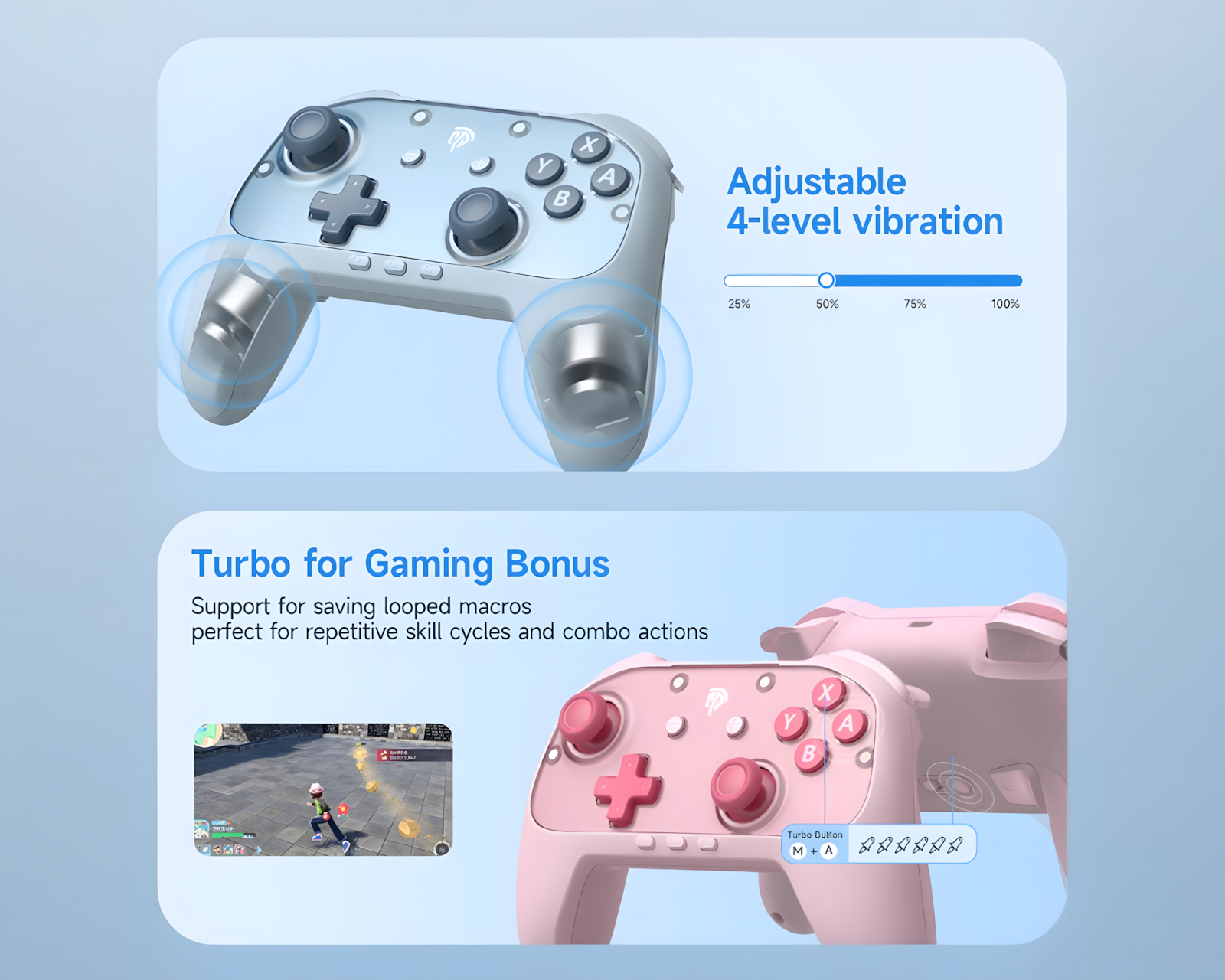S10 Lite on Nintendo-peli-ohjaaja, joka on suunniteltu tarjoamaan saumaton pelikokemus Switch 2:lle. Se on varustettu Hall-efektisensoreilla, jotka eliminovat tikku-driftin, ja siinä on päivitetty Ultra-Glide™-rakenne pehmeämpiä liikkeitä varten. Vahvan Bluetooth-yhteyden ja 1000 mAh:n akkutietokyvyn avulla pelaajat voivat nauttia pitkiä pelisessioita.Tuote tunnetaan hyvin mietitystä rakennelaadustaan, jossa liukastumisen estävä materiaali ja ergonomisesti muotoiltu kaari tekevät siitä miellyttävän pitää kädessä. Ohjaimessa on edistynyt 9-akselinen gyroskooppi, joka korjaa avaruuden driftin reaaliajassa, mikä antaa korkeaa tarkkuutta liikkeissä. Liitäntätavat sisältävät langattoman Bluetoothin ja johdollisen yhteyden Type C:n kautta. Tämä tekee siitä yhteensopivan useiden alustojen kanssa, mukaan lukien Windows ja mobiilikäyttöjärjestelmät.