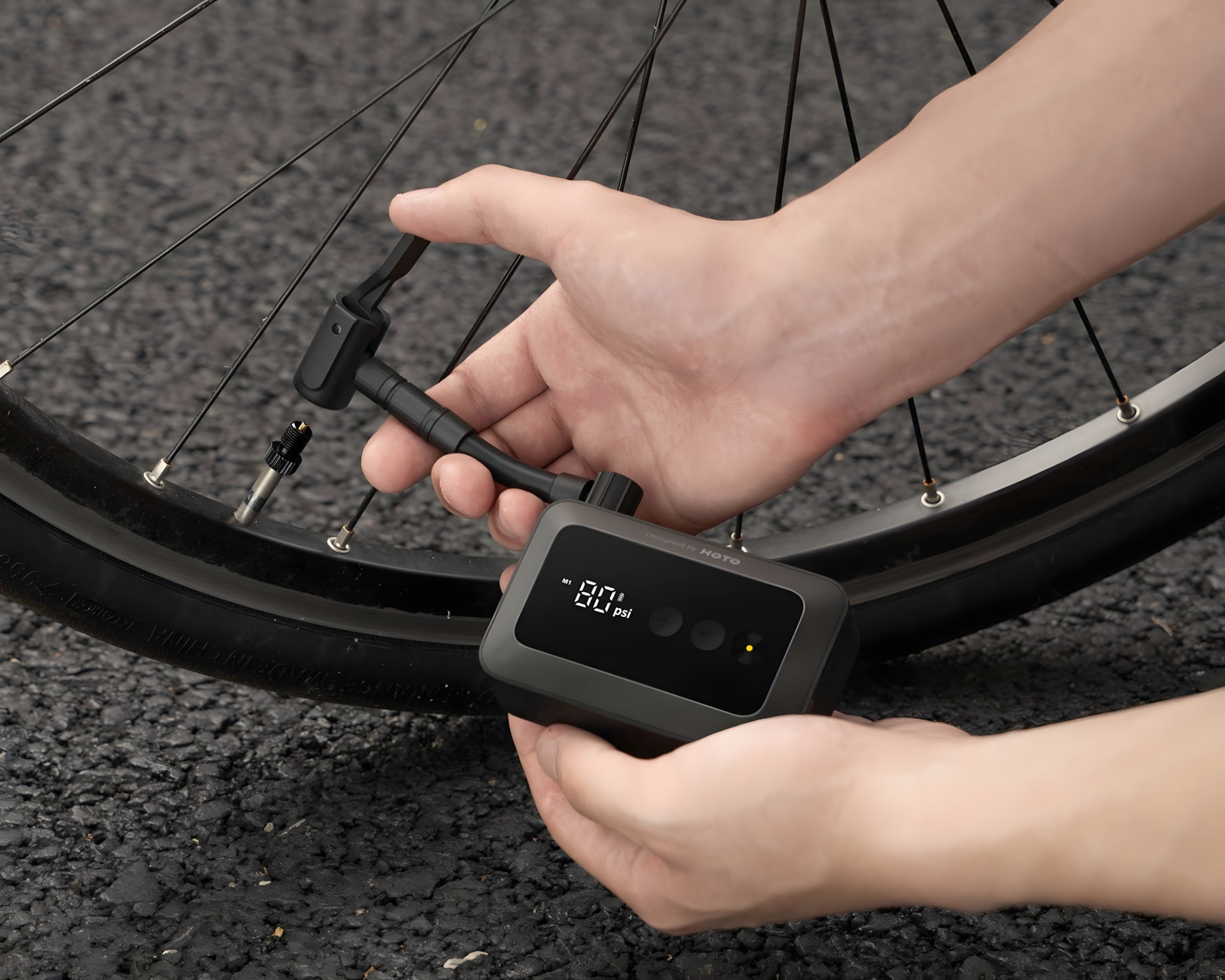 Luftpump Fickformat on kompakti sähköinen ilmapumppu HOTO:lta. Se on suunniteltu käytettäväksi polkupyörien, moottoripyörärenkaiden ja pallojen kanssa. Digitaalisesti säädettävä paineasetus 3:sta 150 psi:hin, pumppu sammuu automaattisesti, kun asetettu paine on saavutettu, ja muistaa viimeisimmän asetuksen nopeaa uudelleenkäyttöä varten. Se sopii maantiepyörille, sähköpyörille, moottoripyörärenkaille sekä pienille ilmatäytettäville esineille.Ilmapumpun rakenne on sekä kevyt että kompakti, mikä tekee siitä helpon kuljettaa mukana laukussa tai taskussa. Sisäänrakennettu litiumakku tarjoaa riittävästi tehoa pumpatakseen jopa kahdeksan polkupyörärengasta ja voidaan ladata nopeasti USB-C:n kautta. Indikaattori näyttää lataustilan ja mukana tulevat adapterit tukevat Schrader-, Presta- ja Dunlop-venttiilejä sekä nopeaa liitintä ja neulaventtiilejä. Näiden komponenttien avulla pumppu on monikäyttöinen ja soveltuu useille erilaisille ilmatäytettäville esineille.