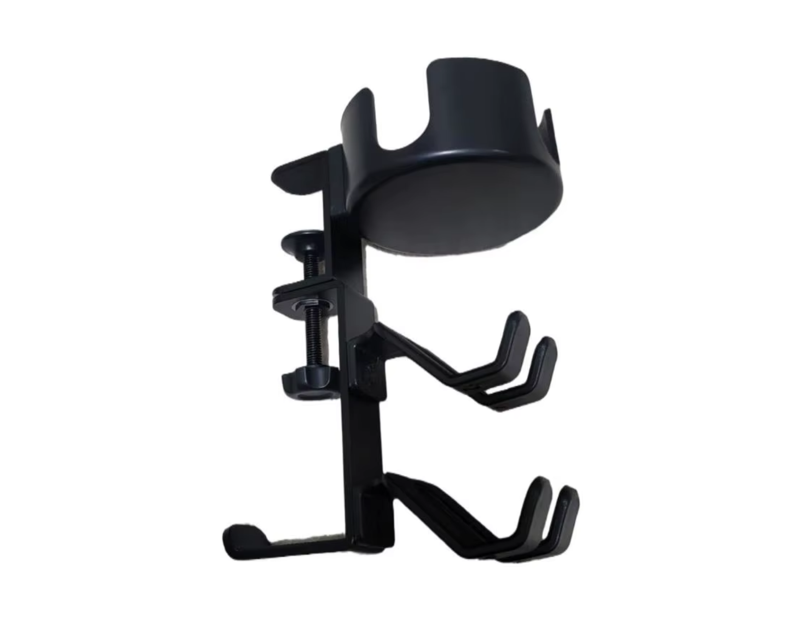 Hållare juomille, kuulokkeille ja ohjaimille on monitoimilaite MaxMountilta, joka yhdistää mukitelineen, kuuloke- ja peliohjaimen pidikkeen 3 in 1 -muotoilussa. Se on suunniteltu tehokkaasti järjestämään lisätarvikkeita, kuten kuulokkeita, peliohjaimia, mukeja ja matkapuhelimia, mikä johtaa käyttäjälle rakenteelliseen työtilaan.Pidike on valmistettu korkealaatuisen alumiiniseoksen ja muovin sekoituksesta, mikä antaa sille kestävän ja pitkäikäisen rakenteen. Enimmäiskuormituskapasiteetti on 9 kg, jolloin se voi käsitellä useita laitteita vaurioitumatta. Klipsi on säädettävä, mikä mahdollistaa asennuksen pöydälle, jonka paksuus on enintään 4 cm. Suojatakseen pöydän pintaa vaurioilta, klipsissä on pehmeät kumipadit päädyissä. Se on myös kestävää ruostetta ja korroosiota vastaan, mikä takaa pitkän käyttöiän päivittäisessä käytössä.