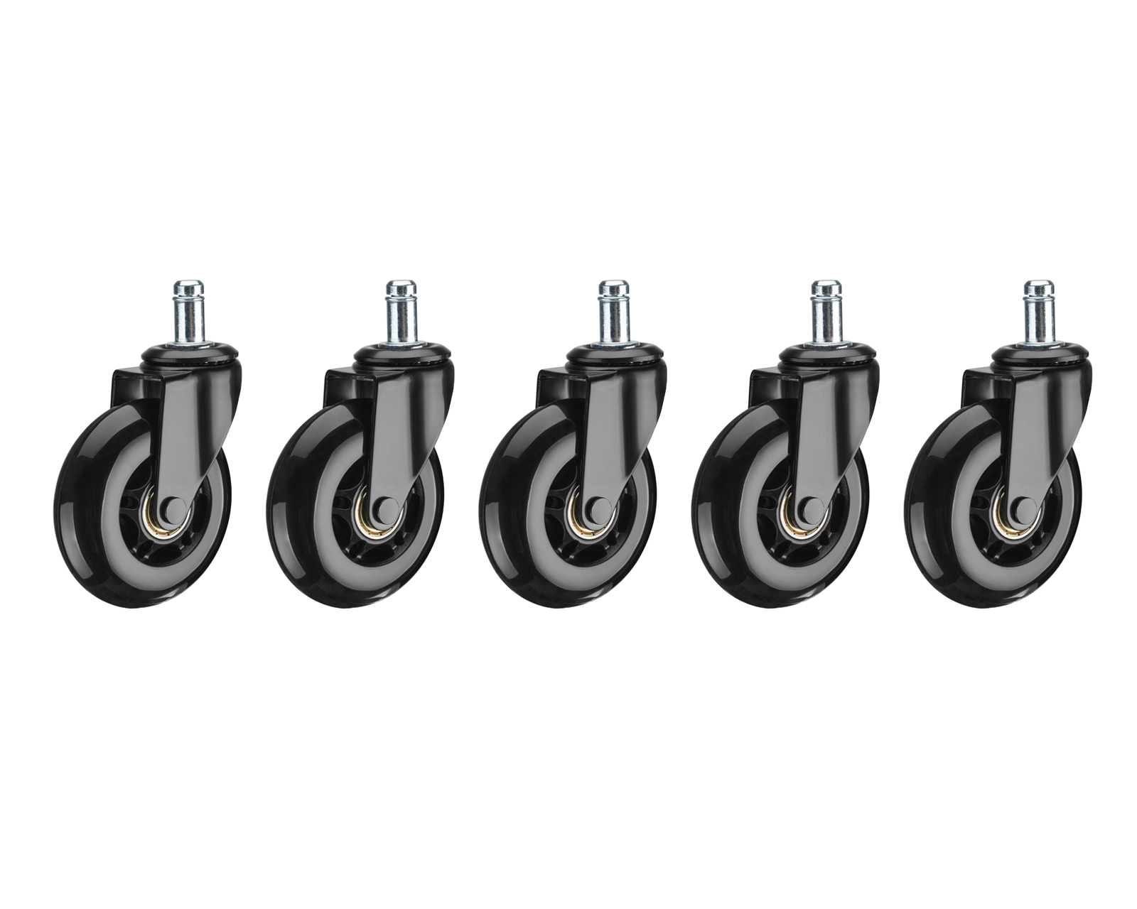 MaxMount-tuolin pyörät on suunniteltu korvaamaan toimisto- ja pelituoleissa käytettävät vakiopyörät. Nämä pyörät mahdollistavat tasaisen vierimisen ja ne on helppo asentaa useimpiin tuoleihin yleiskäyttöisen kiinnitystapin ansiosta. Tuolin pyörien halkaisija on 76 mm ja ne on valmistettu kestävästä PU-kumista, joten ne sopivat käytettäväksi sekä puulattioilla että matoilla.Tuolin pyörät perustuvat kestävään rakenteeseen, jossa on keskitetyt teräskomponentit maksimaalisen kestävyyden takaamiseksi. Erityinen kumiseos varmistaa hiljaisen ja tehokkaan vierimisen vahingoittamatta lattiapintoja. Yleismaailmallinen suunnittelukonsepti tekee niistä yhteensopivia monenlaisten tuolien kanssa, mikä yksinkertaistaa pyörien vaihtamista. Optimaalinen halkaisija edistää vakautta ja hyvää pitoa eri pinnoilla. 11 mm:n kiinnitystapin ansiosta nämä pyörät ovat käytännöllinen ratkaisu niille, jotka etsivät korkeaa toimivuutta toimistoonsa tai leikkihuoneeseensa.