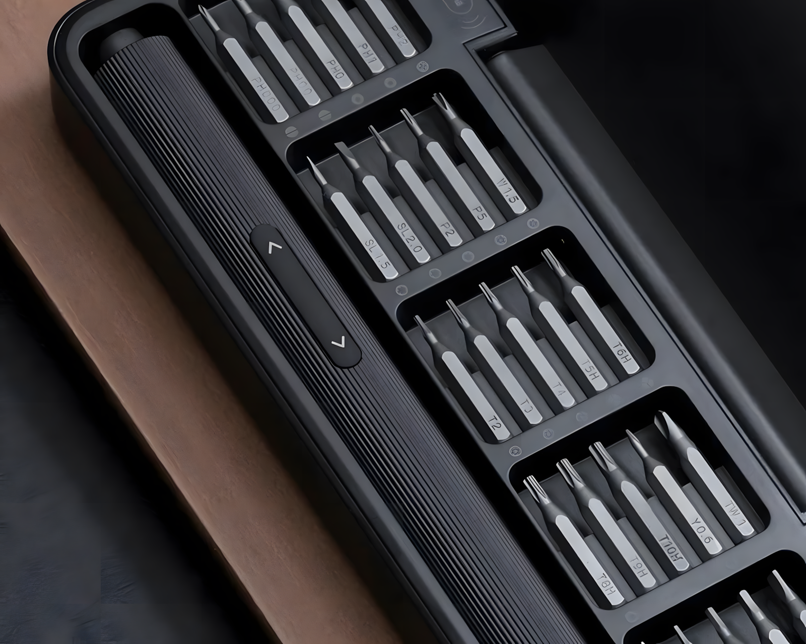 25-i-1 Sähkökruvimeisseli on kompakti ja tehokas laite HOTO:lta, suunniteltu käsittelemään tarkkuusruuvivetoja eri projekteissa. Sarja sisältää 25 S2-teräksistä kärkisarjaa ja tarjoaa sekä automaatti- että manuaalitilat, mikä antaa käyttäjälle joustavuutta työskentelyyn. Siinä on myös ergonominen muotoilu liukumatonta alumiinikuorta ja yhden painikkeen ohjaus, joka tekee käytöstä helppoa.Laite sisältää laajan valikoiman 25 S2-teräksistä kärkisarjaa, mukaan lukien Phillips, Torx, Urakanta, Kuusikulma, Pozidriv, Neliö ja turvakärkiä, mikä tekee siitä soveltuvan erilaisiin ruuveihin. Sisäänrakennettu magneettikoje parantaa otetta mikro-ruuveista ja estää turhautumista pienten osien käsittelyssä. USB-C-ladattava akku ja kaksivärinen merkkivalo akun kunnosta varmistavat, että laitteen teho on aina saatavilla. Anodisoidut kärjet ja liukumatonta alumiiniseosta oleva kansi tarjoavat myös hyvän rakennuslaadun.