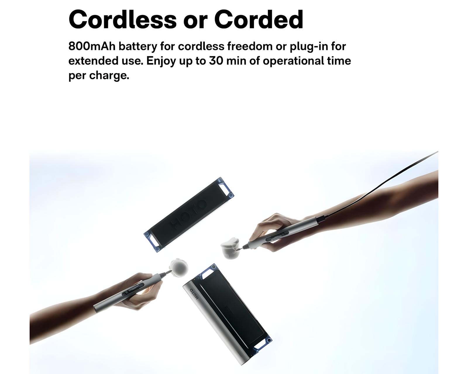 SNAPBLOQ R-A04 on HOTO:n sähköinen mini pyörivä työkalusetti, joka on kehitetty käyttäjille, jotka etsivät tarkkuutta ja kontrollia tee-se-itse-projekteissaan. Harjattomalla moottorilla varustettu työkalu tarjoaa tehokkaan toiminnan 15 000-22 000 kierrosta minuutissa ja mahdollistaa portaattoman nopeuden säätämisen mukautettua käyttöä varten. Työkalulla on tiivistetty muotoilu ja se on erittäin kevyt, vain 97 gramman painolla. Se on varustettu ergonomisilla kahvoilla, joissa on erityisesti suunniteltu liukumatonsuojaus helpottamaan käyttöä pidempien jaksojen aikana.SNAPBLOQ R-A04 tarjoaa maksimikäytön keston jopa 30 minuuttia yhdellä latauksella ja tukee sekä langatonta että langallista käyttöä Type-C-latauksella. Harjaton teknologia varmistaa pitkän kestävyyden ja johdonmukaisen tehon. Kompaktin ja monikäyttöisen muotoilunsa ansiosta SNAPBLOQ R-A04 on ihanteellinen sekä harrasteprojekteihin että vaativiin työskentelytasoihin. Tämä käytännöllinen rakenne ja luotettava suorituskyky tekevät siitä erinomaisen valinnan kaikille, jotka työskentelevät yksityiskohtaisten tehtävien parissa.