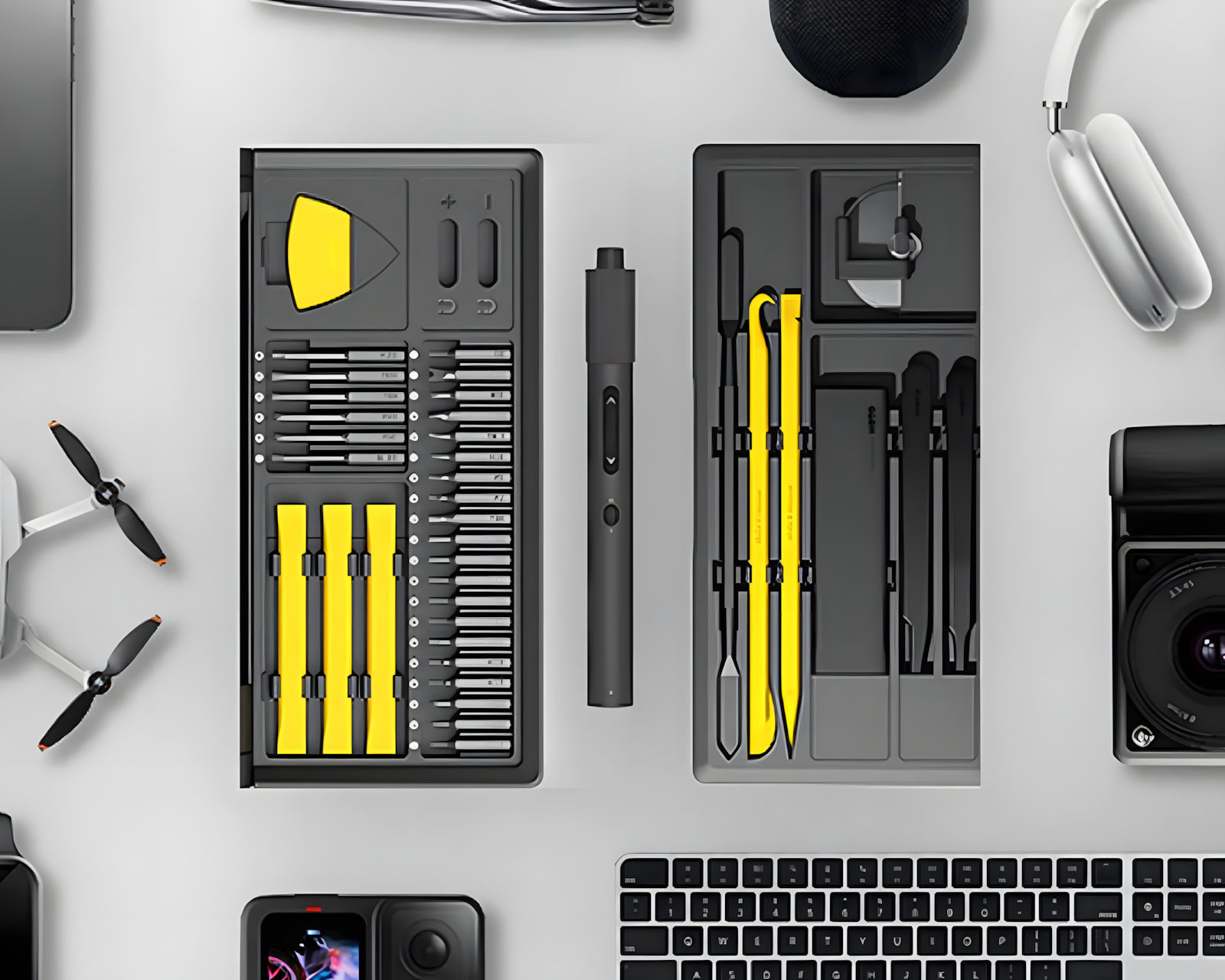 Precision Ruuvimeisselisetti Pro on HOTO:n sähköinen ruuvimeisseli, joka yhdistää tarkkuuden ja käytännöllisen toiminnallisuuden. Se on varustettu kaksoiskierretoiminnolla, mikä tekee helppoa vaihtaa herkistä vaativiin tehtäviin. Yksinkertainen nappilukitus aktivointia varten ja LED-valaistus työskentelyalueen valaisemiseen tarjoavat käyttöystävällisyyttä ja tehokkuutta. Se sisältää myös nopean magneettisen bittivaihdon sujuvaan käsittelyyn.Setti koostuu 48 korkealaatuisesta lisävarusteesta, jotka mahdollistavat laajan käyttöspektrin, pienistä elektronisista laitteista kotikorjauksiin. Koko setti säilytetään klamshell-työaseman sisällä, joka pitää kaiken järjestettynä ja helposti saatavilla. Rakennuslaatu on korkea, ja vahvat materiaalivalinnat takaavat kestävyys. Sähköinen ruuvimeisseli osoittaa luotettavaa suorituskykyä, mikä tekee siitä sopivan sekä ammattilaisille että tee-se-itse-harrastajille, jotka arvostavat tehokkuutta ja tarkkuutta.