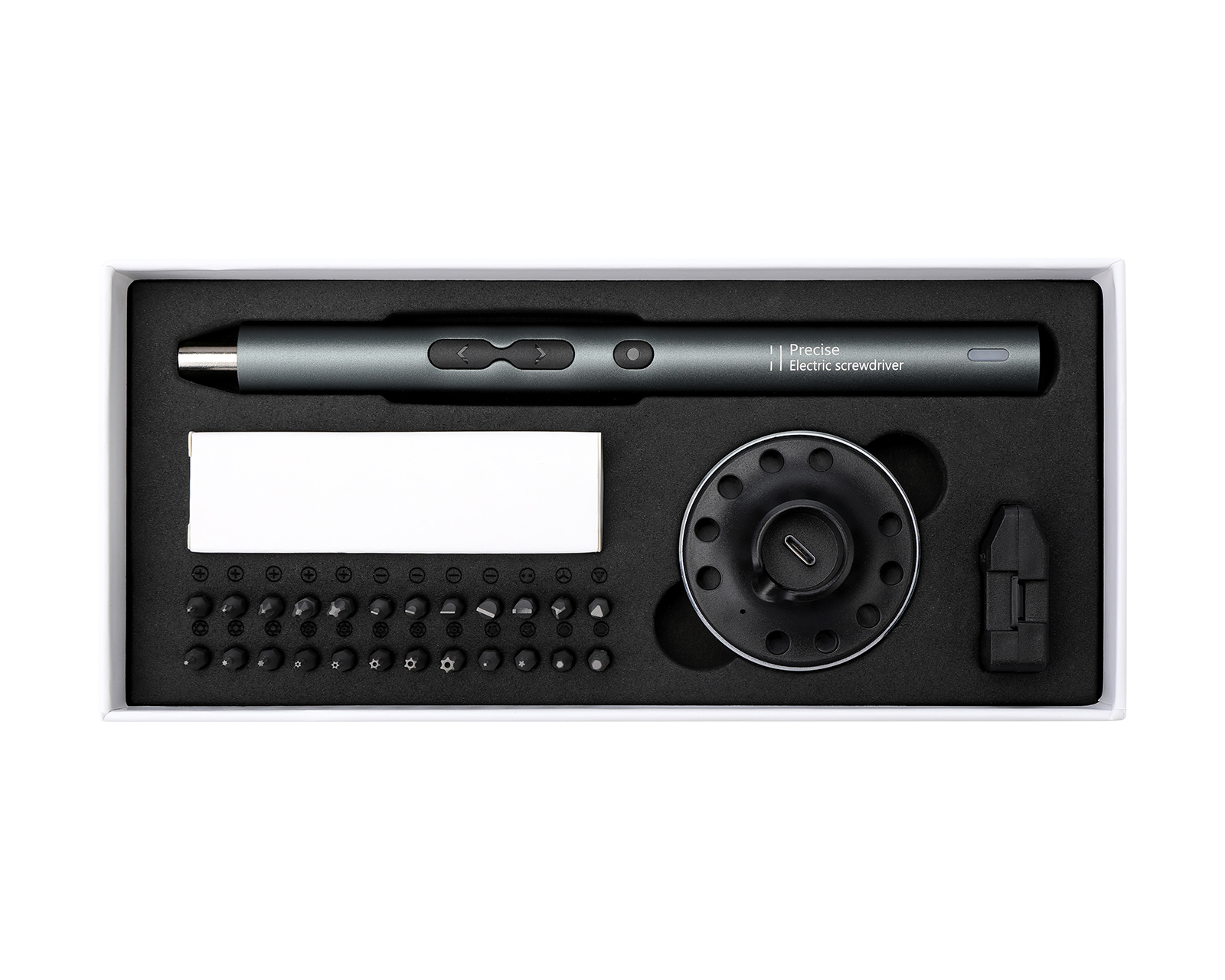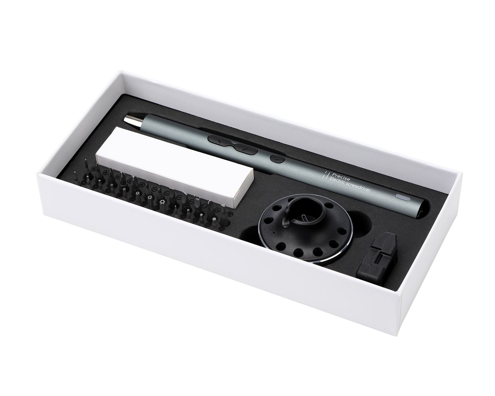 Elektrinen tarkkuusruuvimeisseli MaxMountilta, suunniteltu teknisesti kiinnostuneiden käyttäjien tarpeita varten. Tämä kompakti ruuvimeisseli tarjoaa 24 premium S2 teräskuulaketta ja käytännöllisen latausasemaan sujuvaa käyttöä varten. Suunniteltu tarjoamaan optimaalista tarkkuutta ja kestävyyttä, ergonomisella rakenteella, joka tekee ruuvaamisesta helppoa ja mukavaa.Ruuvimeisselissä on tehokas 350mAh litiumakku, joka tarjoaa täydellisen latauksen 50 minuutissa ja pystyy ruuvaamaan jopa 300 ruuvia ladattuna. 360 asteen varjoton valaistus kolmen sisäänrakennetun LED-lampun avulla valaisee tehokkaasti työskentelyaluetta. Lisäksi langaton ja ladattava muotoilu tekee käytöstä joustavaa ja mukavaa. Älykäs moottori älykkäillä suojausominaisuuksilla takaa pitkän käyttöiän ja tehokkaan toiminnan. Maksimi nopeus on 200 rpm ja maksimaalinen sähkömomentti 0,35N.m, joten tämä ruuvimeisseli on täydellinen monenlaisiin sovelluksiin kotona tai toimistossa.