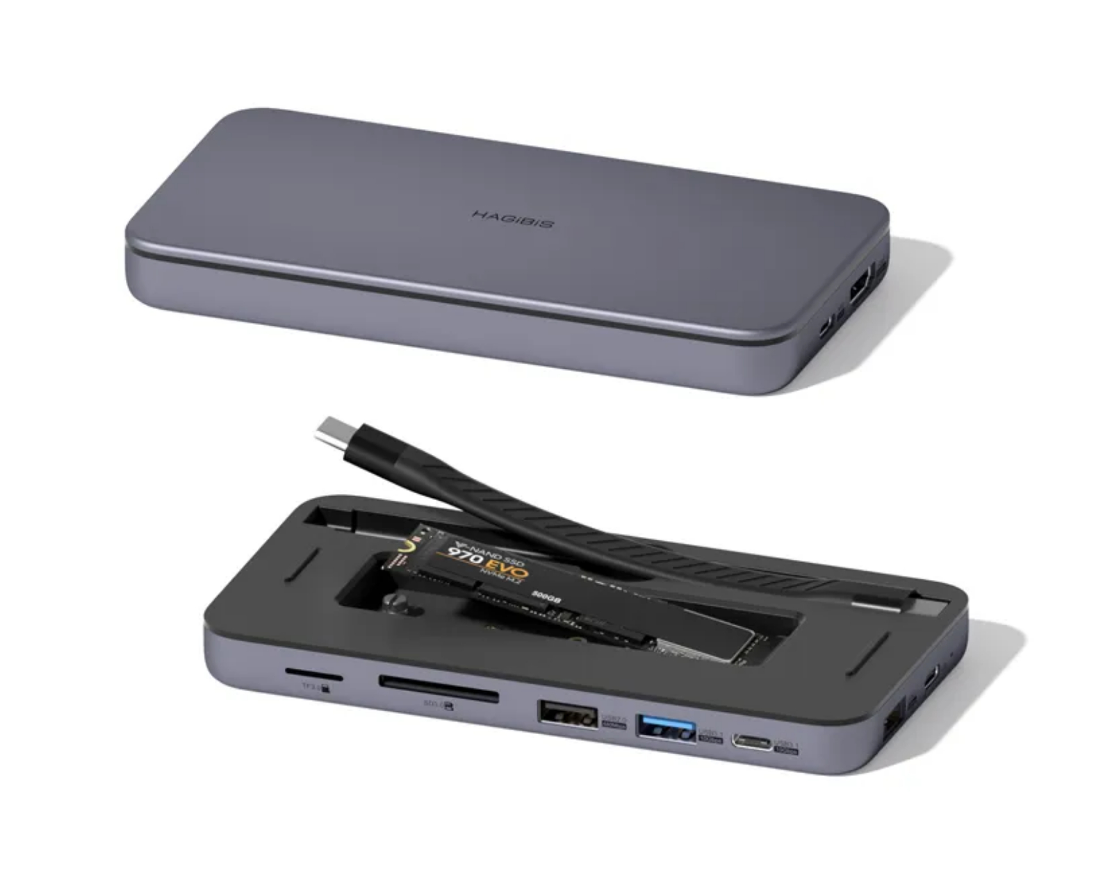USB C Hub kovalevyn kotelolla on Hagibisin dokkitasema, joka yhdistää tallennustilan laajentamisen ja erilaisten laitteiden liittämisen toiminnot. Se tukee 2,5 tuuman SATA-laitteita, kuten SSD:itä ja HDD:itä, joiden paksuus on alle 15 mm. Teoreettisella siirtonopeudella, joka on jopa 5 Gbps, 1 GB tiedosto voidaan siirtää vain 2 sekunnissa. Sovitinratkaisu on tarkoitettu käyttäjille, jotka tarvitsevat lisää tallennustilaa ja tiedonsiirtokapasiteettia.USB C Hub kovalevyn kotelolla on rakennettu tarjoamaan korkeaa toiminnallisuutta ja suorituskykyä. Siinä on TF/SD-korttipaikka ja USB-portit useiden laitteiden samanaikaista liittämistä varten. Mukana oleva kaksoispäät-kabeli tukee sekä USB C:tä että USB A:ta, mikä tarjoaa laajan yhteensopivuuden eri järjestelmien kanssa. Rakenteessa käytetyt materiaalit on valittu vakauden ja kestävyyden varmistamiseksi erilaisissa olosuhteissa. Tämä hubi mahdollistaa tehokkaan ja sujuvan laitteiden käytön sekä työ- että kotiympäristöissä.