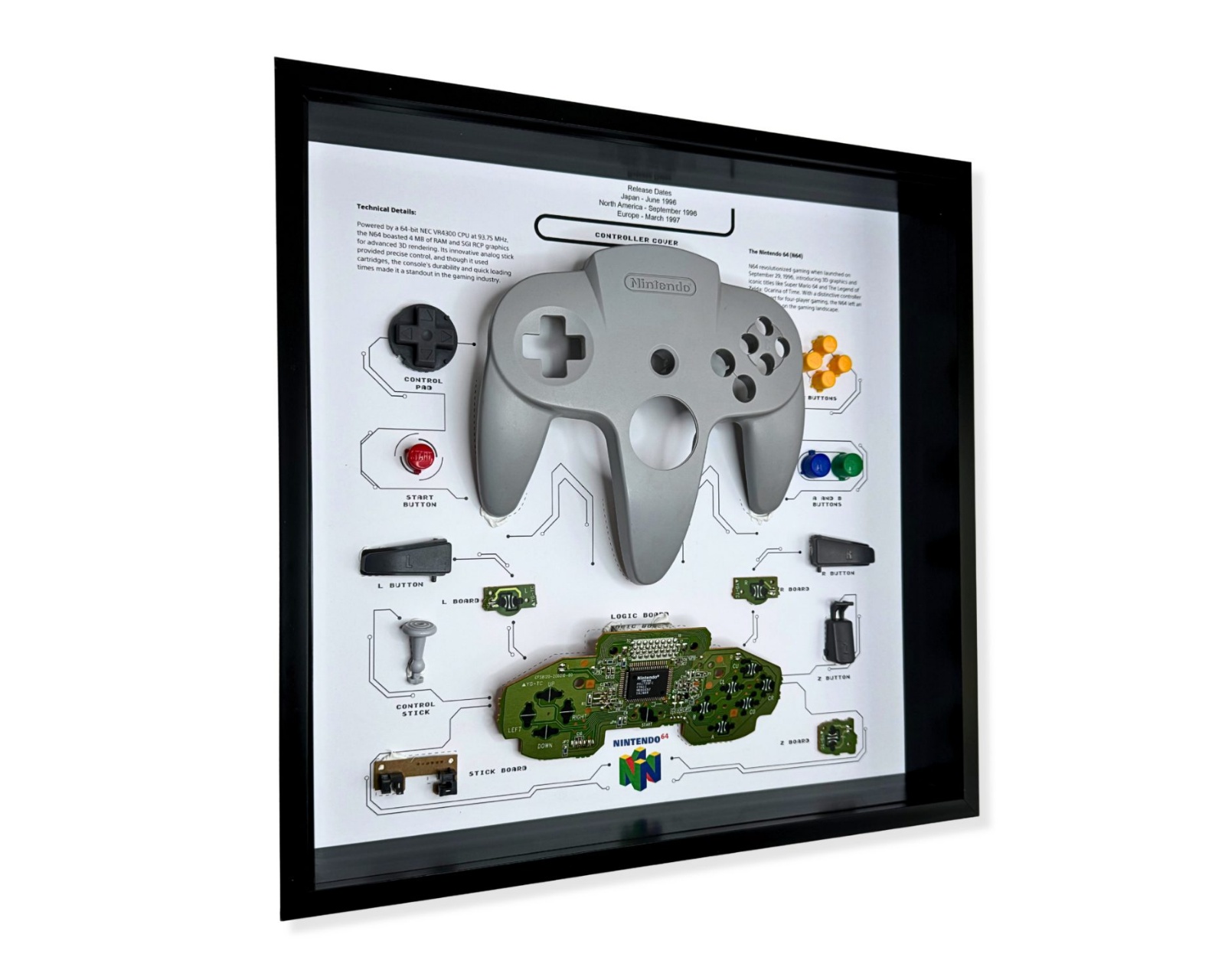 Retro Art Nintendo N64 Ohjaimen Näyttö on uutuus GRC:ltä, joka tarjoaa ainutlaatuisen ja nostalgisen esityksen ikonista N64-ohjainta. Tämä tuote on suunniteltu keräilijöille ja retro-pelien faneille, mikä tekee siitä mielenkiintoisen sisustuselementin peli- tai toimistotilaan. Tyylikkään harmaan värinsä ansiosta se sopii hyvin erilaisiin ympäristöihin.Tuote on valmistettu korkealaatuisista materiaaleista varmistaakseen kestävyyden ja esteettisesti miellyttävän ulkonäön. Rakenne korostaa N64-ohjaimen klassista muotoilua ja yksityiskohtia, mikä antaa autenttisen tunteen retro-pelihistoriasta. Näyttö on räätälöity pitämään ohjain luotettavasti paikallaan, mikä suojaa sitä vahingoilta ja kulumiselta, kun sitä ei käytetä. Tuotteessa on ergonominen rakenne, joka helpottaa sen sijoittamista ja käsittelyä.