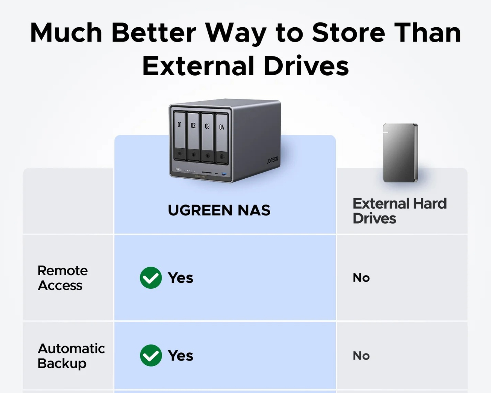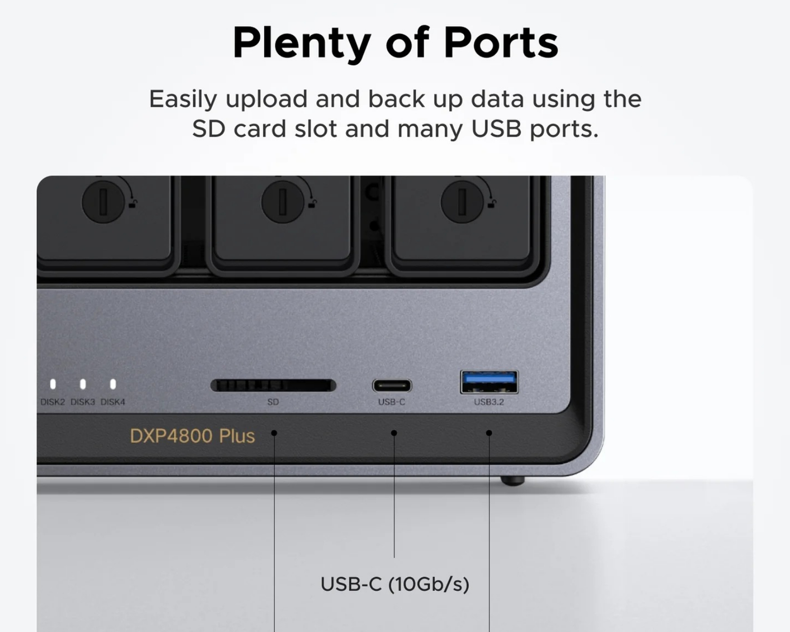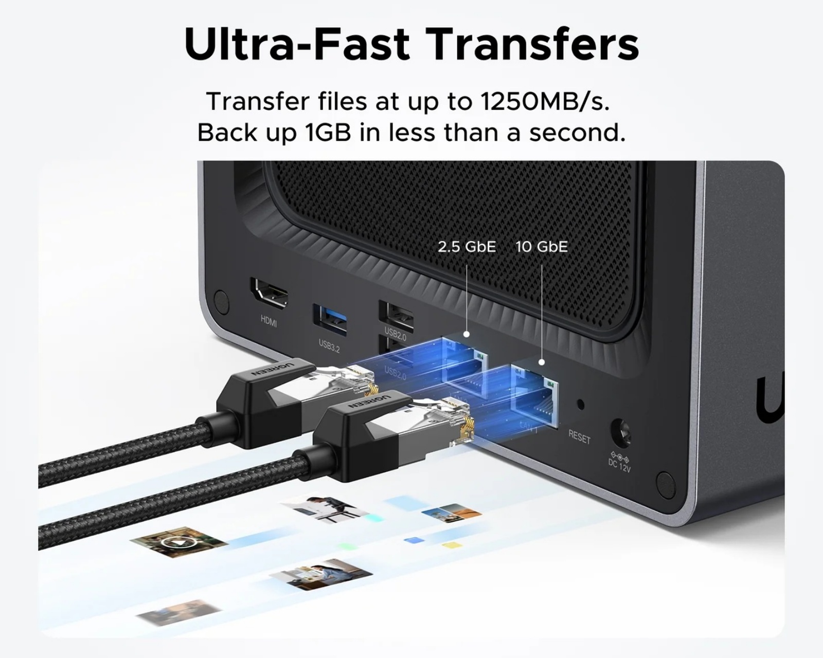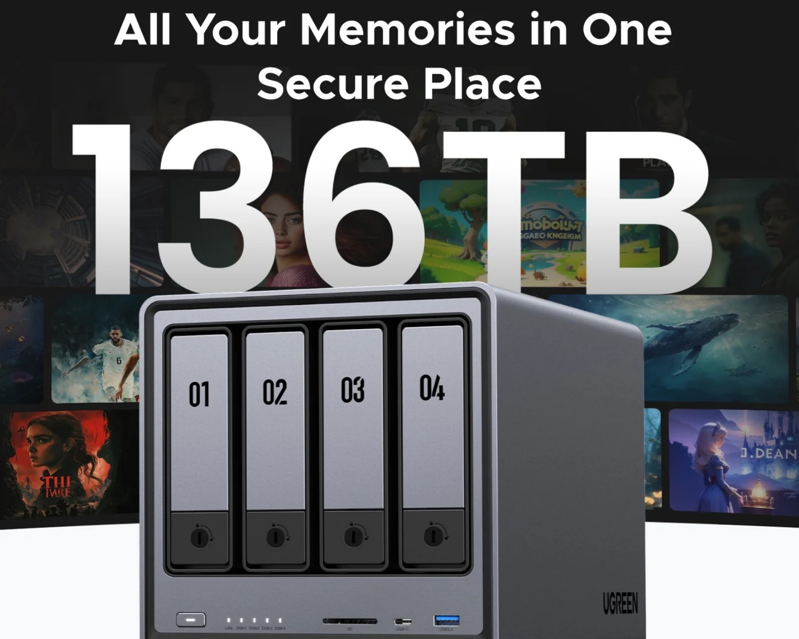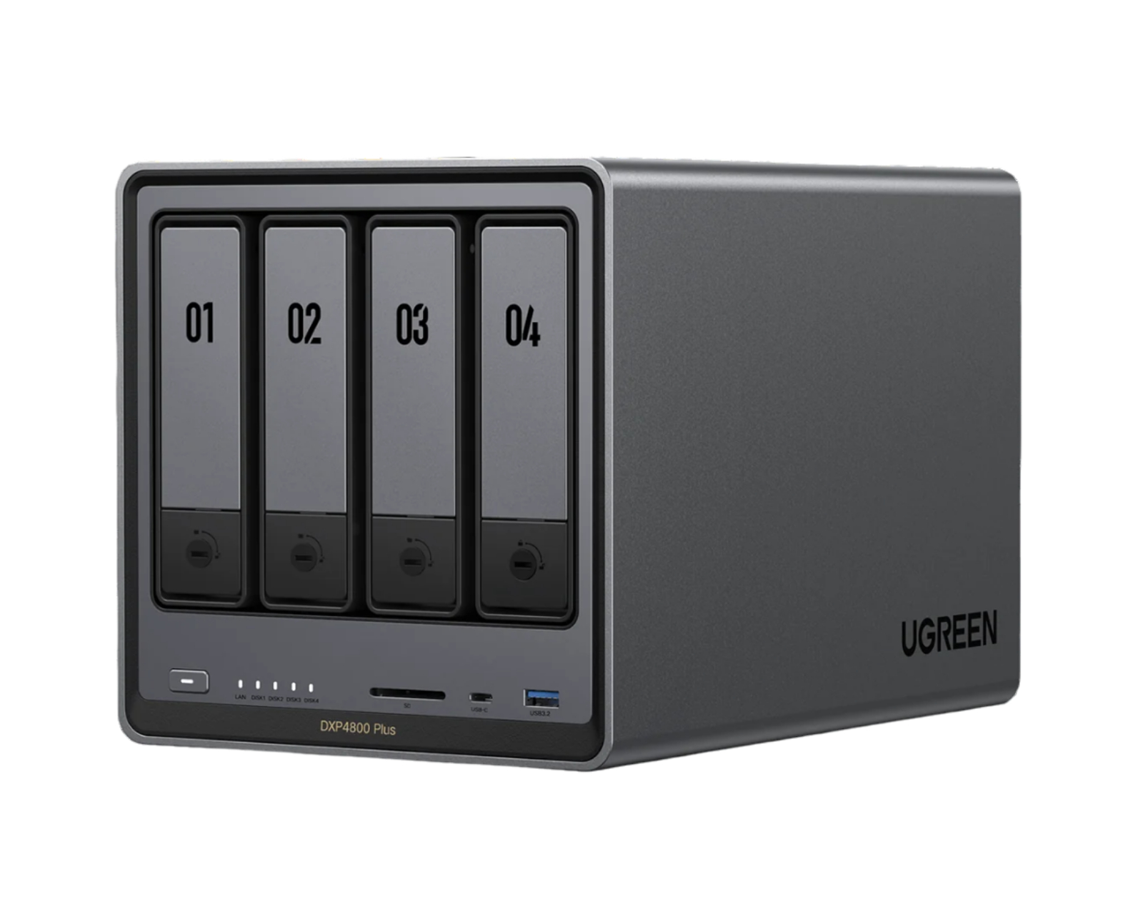 UGREEN NASync DXP4800 Plus on UGREENin valmistama 4-väyläinen NAS-laite, joka yhdistää tallennuskapasiteetin edistyksellisiin etäkäyttö- ja varmuuskopiointitoimintoihin. Intel Pentium Gold 8505 5-ytimellisellä prosessorilla ja 136TB tallennustuen ansiosta se sopii sekä kotikäyttöön että pienyrityksiin. Laite tarjoaa jopa 10GbE nopeuksia tietojen siirrossa ja siinä on HDMI-ulostulo 4K-videota varten.UGREEN NASync DXP4800 Plus on rakennettu tehokkuuteen ja suorituskykyyn keskittyen. Se on varustettu 8GB DDR5 RAM-muistilla, jota voidaan laajentaa jopa 64GB:iin, mahdollistaen sujuvan moniajon. Siinä on kaksi M.2 NVMe -paikkaa nopeaa lukemista ja kirjoittamista varten, mikä optimoi edelleen kokonaissuorituskykyä. Laite mahdollistaa keskitetyn tallennuksen ja automaattiset varmuuskopiot, samalla kun se tarjoaa käyttäjäystävällisen tiedostokäytön useilla alustoilla.