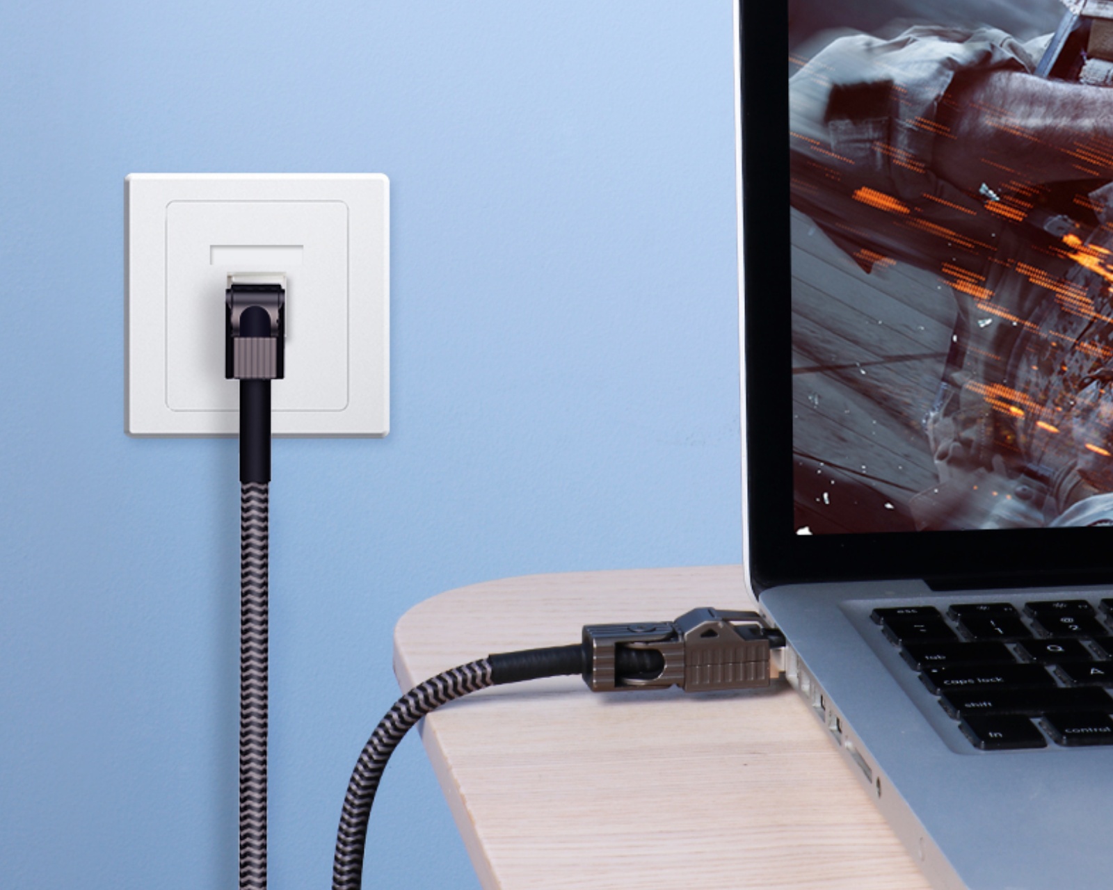 Cat8 Ethernet-kaapeli ENC01 0,5 m on Hagibisin valmistama verkkokaapeli, joka tarjoaa korkean nopeuden ja vakaan yhteyden eri verkkoympäristöissä. Se toimittaa tiedonsiirtonopeuksia jopa 40 Gbps ja kaistanleveyksiä 2000 MHz, mikä tekee siitä sopivan sekä toimistoihin että koteihin, joissa verkkokapasiteetti on ratkaisevan tärkeää. Kaapeli on kestävä ja suunniteltu kestämään erilaisia asennustilanteita joustavan rakenteensa ansiosta.Kaapelissa on 90 asteen kääntö neljässä suunnassa, mikä mahdollistaa sen helpon mukauttamisen erilaisiin asennustarpeisiin. Se on suunniteltu estämään vaurioita käännöksistä ja taivutuksista, mikä pidentää käyttöikää ja käyttökelpoisuutta ahtaissa tiloissa. Materiaali koostuu korkealuokkaisesta punotusta rungosta ja PVC-suojapinnoitteesta, mikä antaa vahvan ja kestävän rakenteen. Siinä on myös monikerroksinen suojattu rakenne, jonka ytimessä on puhdas kupari ja kaksipuolinen alumiinifoliokerros maksimaalisen signaalilaadun varmistamiseksi.