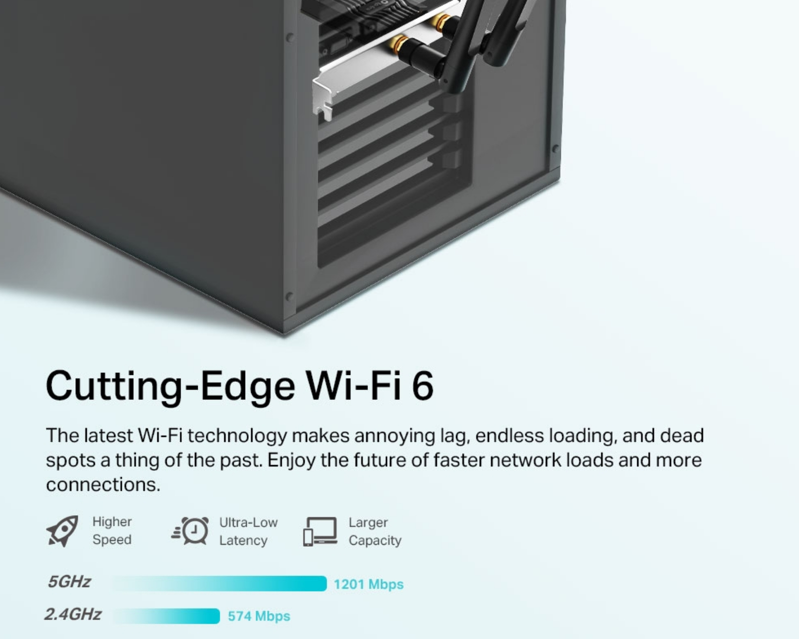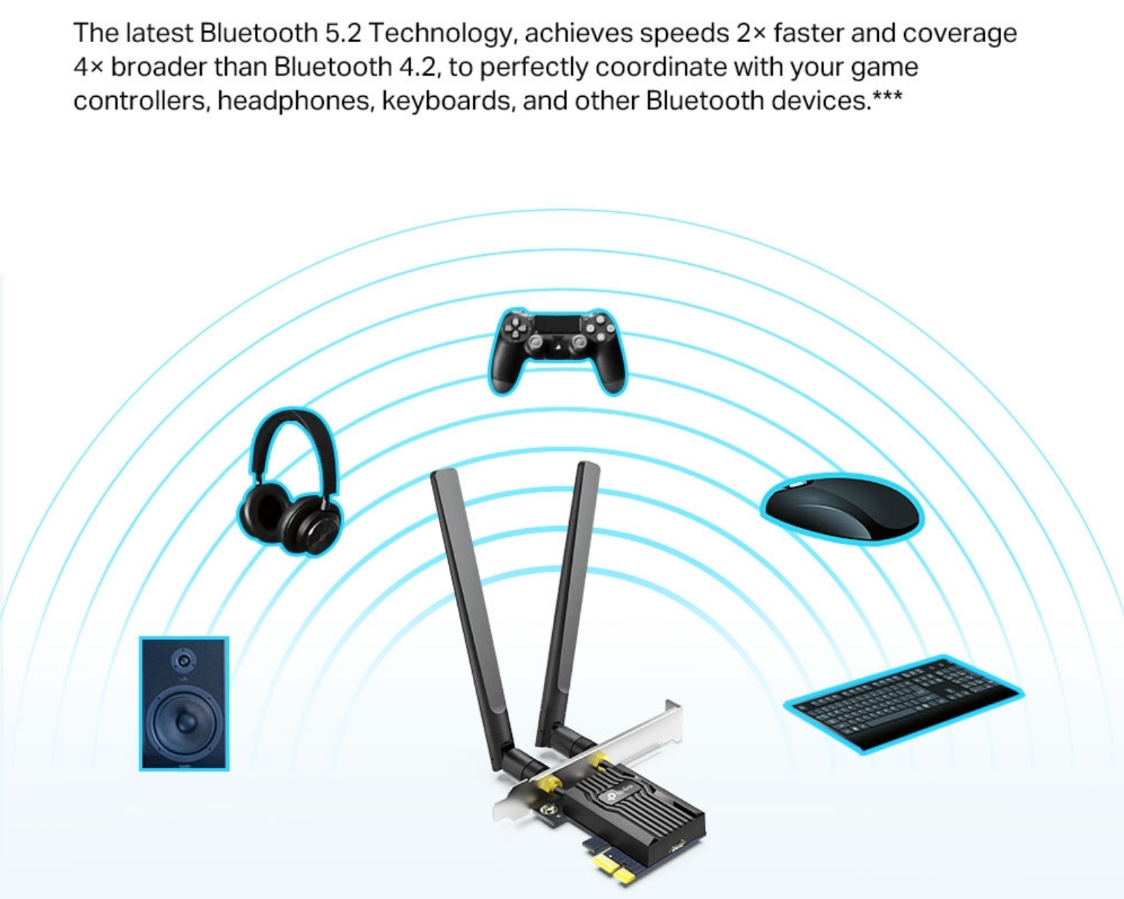 Archer TX20E on TP-Linkin PCIe-sovitin, joka tarjoaa tuen Wi-Fi 6:lle ja Bluetooth 5.2:lle. Tämä laite tarjoaa erinomaisia nopeuksia, jopa 1201 Mbps 5 GHz:llä ja 574 Mbps 2,4 GHz:llä, mikä rikkoo gigabittirajan. Kahden ulkoisen huippusuorituskykyisen antennin avulla varmistetaan laajempi signaalin kattavuus koko kodissa, mikä lisää vakautta ja yhteyttä.Archer TX20E on rakennettu tuottamaan korkeaa suorituskykyä ja siinä on tuki uusimmille teknisille standardeille, mukaan lukien 802.11ax, ac, a, b, g ja n. Bluetooth 5.2 -teknologia mahdollistaa nopeammat nopeudet ja lisää kattavuutta jopa neljä kertaa verrattuna edellisiin versioihin. Lisäksi WPA3-suojausprotokolla tarjoaa parannettua suojaa henkilökohtaiselle salasanaturvallisuudelle. Sovittimen suunnittelu on myös taaksepäin yhteensopiva, mikä tekee siitä käyttökelpoisen eri verkkokonfiguraatioissa.
