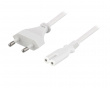 Deltaco maadoittamaton laitekaapeli, suora CEE 7/16 - suora IEC 60320 C7, 2m, max 250V/2.5A, valkoinen.